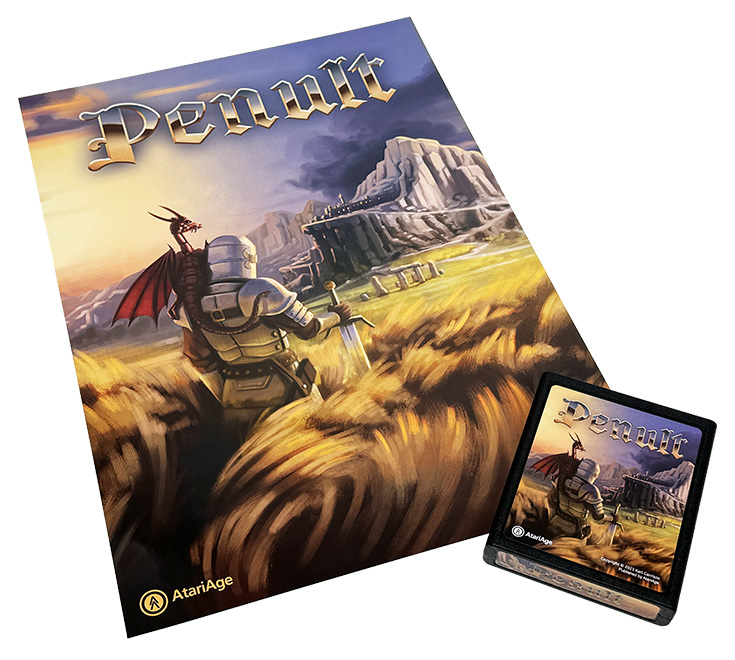 Penult is now available for pre-order in the AtariAge store. Note the turnaround time mentioned on the product page linked below. As of this writing, it may take two or more months before pre-orders are shipped. The boxed copy of the game includes the cart, a 36-page manual, a poster, and a cloth map of Faradur.
